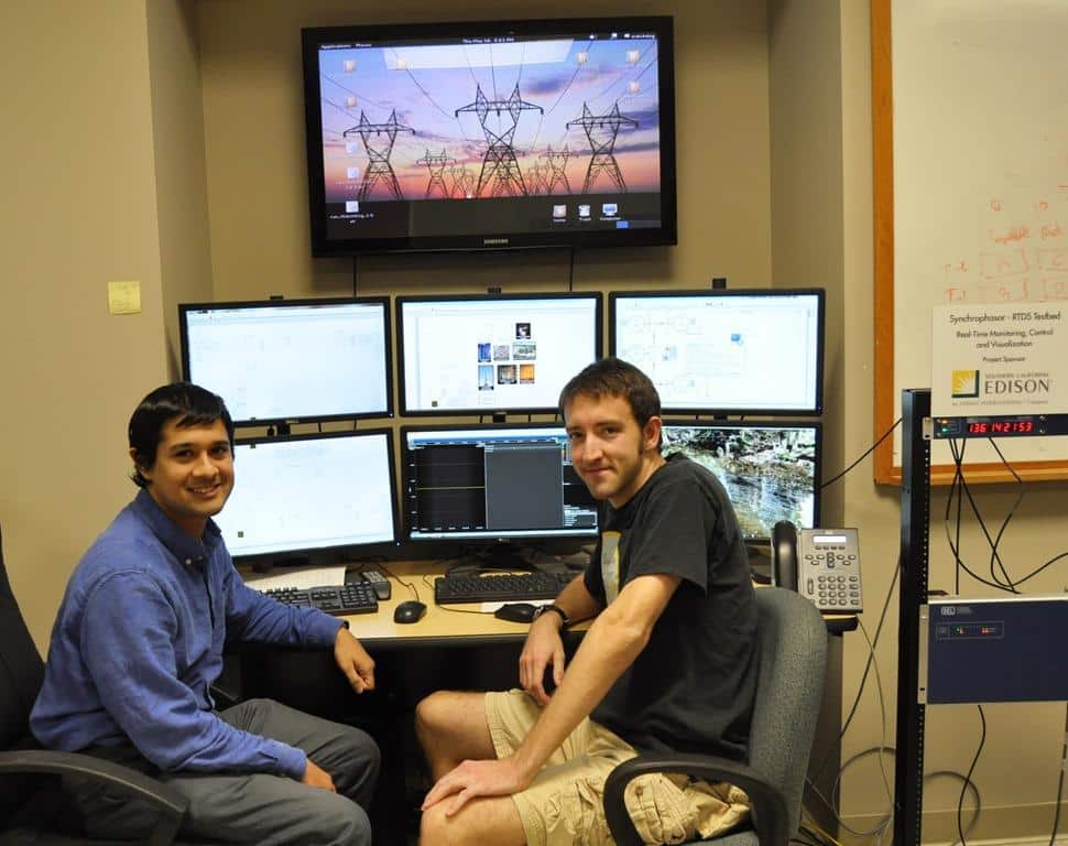June 28, 2013Dr. Aranya Chakrabortty (L) with one of his students NC State University has received a $200K research grant from the US Department of Energy to advance its ongoing research and education in wide-area monitoring and control of power systems using Synch …