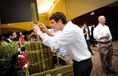 June 20, 2013Kathan Bender tinkers with a bamboo water fountain created by his team for Freshman Engineering Design Day. The bubble-blowing machine created by Morgan Danyi and her team worked just fine except for one minor problem: It didn’t blow any bubbles. Some …